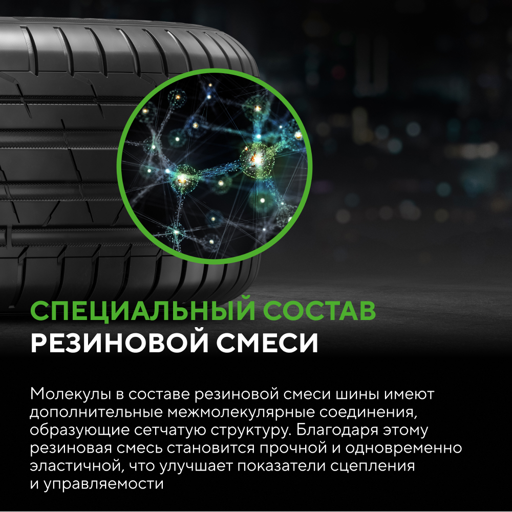 Такая архитектура формирует стабильную зону контакта и помогает шине сохранять характеристики даже при экстремальных нагрузках.