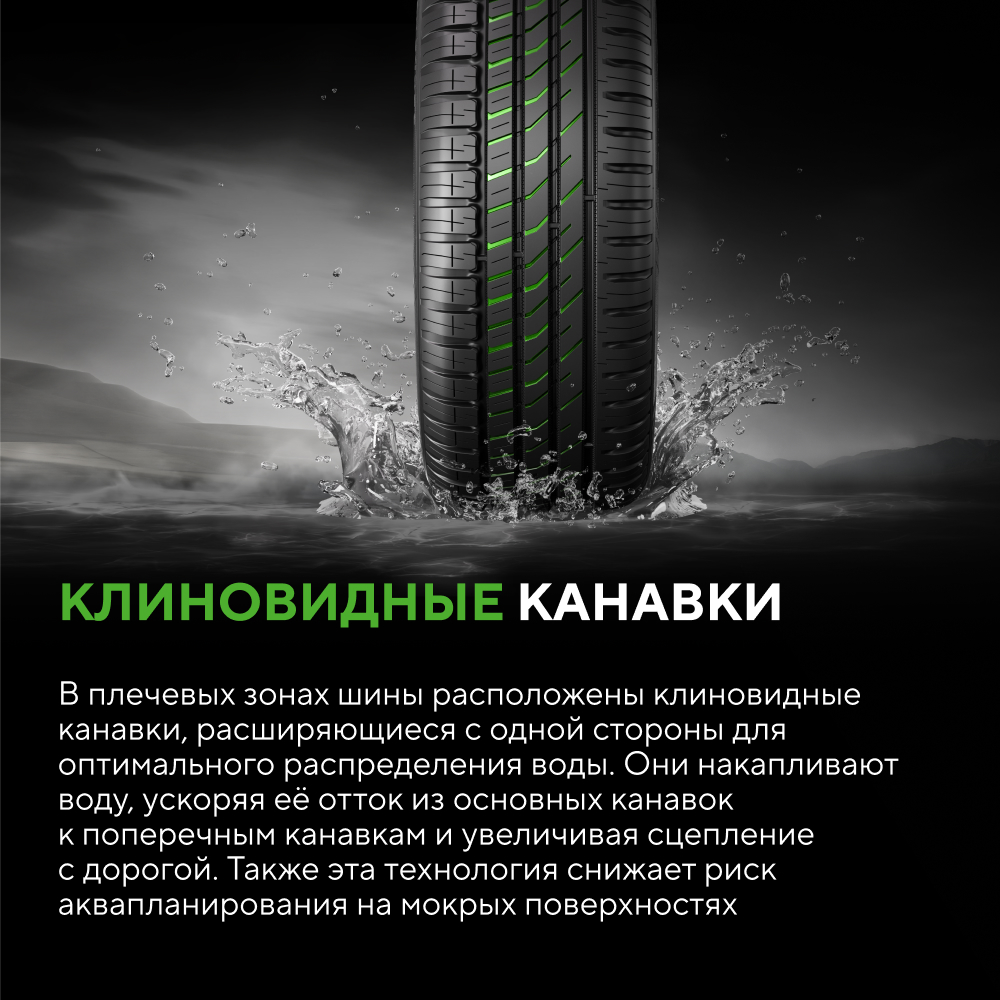 - Обеспечивает предсказуемое поведение в колее и на влажном асфальте.